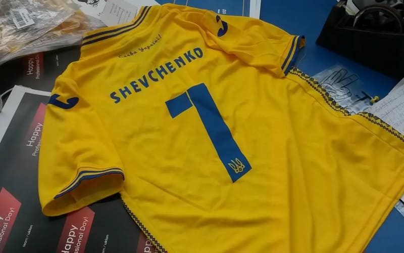 Maillot de l’équipe nationale d’Ukraine avec le nom du légendaire Andriy Shevchenko et le numéro 7. Soutenez fièrement l’équipe nationale !